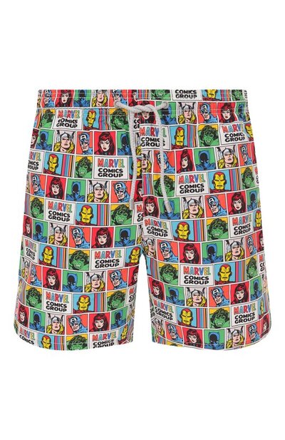 Плавки-шорты Gustavia с парой дренажных люверсов сшили из переработанного полиэстера с изображением персонажей Marvel. Модель с поясом-кулиской и сетчатым подкладом дополнили двумя врезными карманами и накладным с клапаном на липучке. В комплекте ─ информационный браслет.