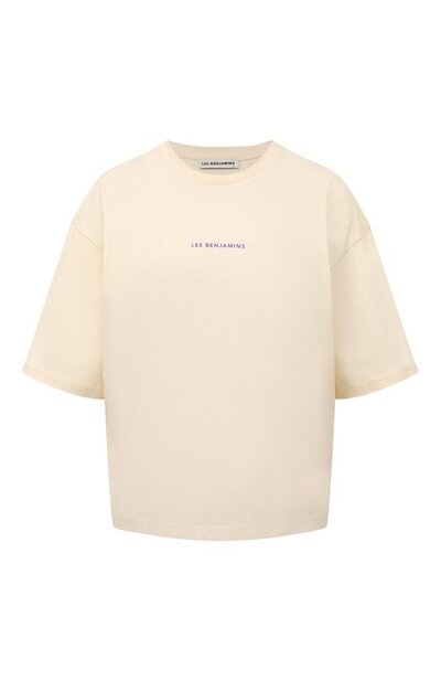 Кремовая футболка с короткими рукавами освежит палитру любого образа. Например, наши стилисты предлагают составить лаконичный комплект с блейзером и сумкой в тон изделию, синими джинсами и черными балетками. Максимальный комфорт обеспечат мягкое хлопковое джерси, позволяющее телу дышать, и силуэт оверсайз, не ограничивающий движения. На груди ‒ сиреневый логотип, указывающий на принадлежность бренду.