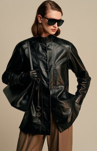 Сумку Le Click East-West с регулируемой ручкой и обтяжной рамочной застежкой выполнили из мелкозернистой телячьей кожи. Модель с фольгированным логотипом спереди дополнили небольшим брендированным брелоком и длинным с разъемными кольцами на концах.