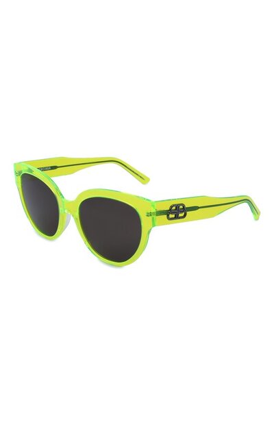 Солнцезащитные очки формы cat eye выглядят ярко. Включить цвет на максимум получилось контрастным сочетанием темных линз и неоново-желтой полупрозрачной оправы, оттенок которой будто позаимствовали у маркера для выделения текста. Для изготовления аксессуара использовали легкий прочный ацетат.