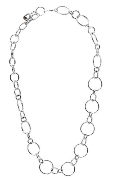 Для изготовления регулируемого ожерелья «Властелин Колец» со звеньями разного размера использовали латунь. Модель декорировали подвеской с топазом.