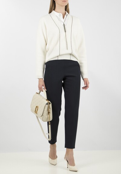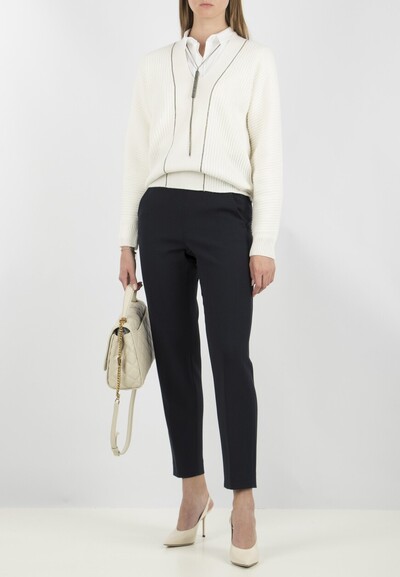 Темно-синие укороченные брюки – лучший подарок для любителей элегантности и сдержанной итальянской классики. В них можно пойти как на прогулку с друзьями, так и в офис.