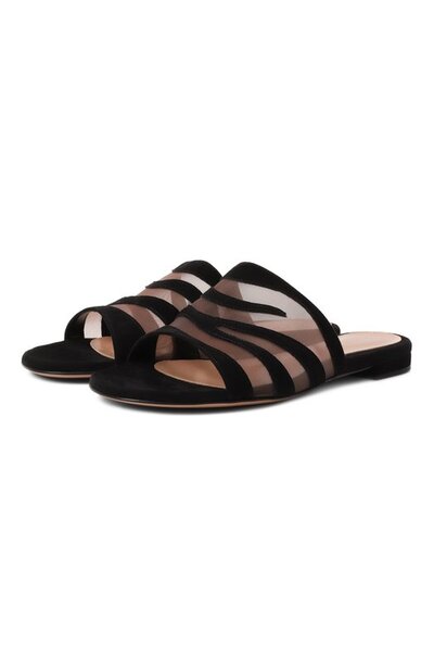 Шлепанцы Tigra с анималистичными полосами на союзке выполнили вручную из замши и прозрачной сетки. Модель с округлым мысом поставили на небольшой каблук.