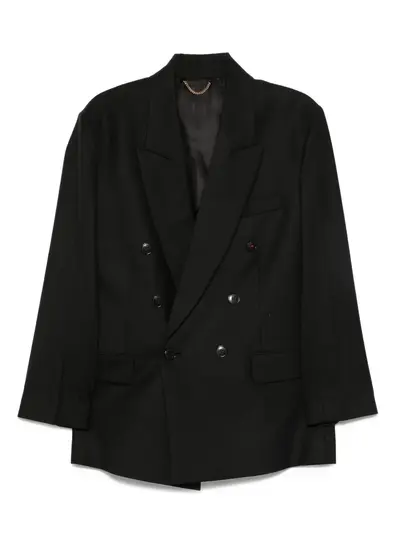 black double-breasted button fastening peak lapels long sleeves straight hem
