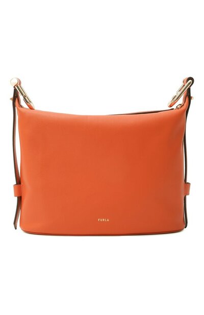 Сумку Furla Nuvola с внутренним карманом выполнили из мелкозернистой телячьей кожи Claris Lux. Аксессуар украсили тисненым логотипом, а регулируемый плечевой ремень — фирменными креплениями-карабинами Arcosfera.