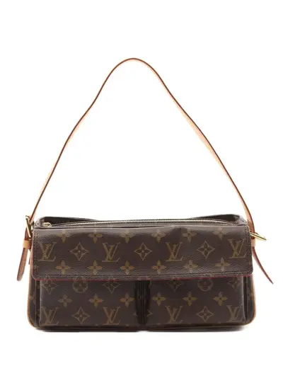 circa 2007 brown signature Monogram canvas Vachetta leather trim adjustable shoulder strap top zip fastening main compartment internal logo patch full lining two front flap pockets logo-engraved gold-tone hardware Condition: EXCELLENT. This previously owned item is in near-perfect condition with no signs of damage or use.