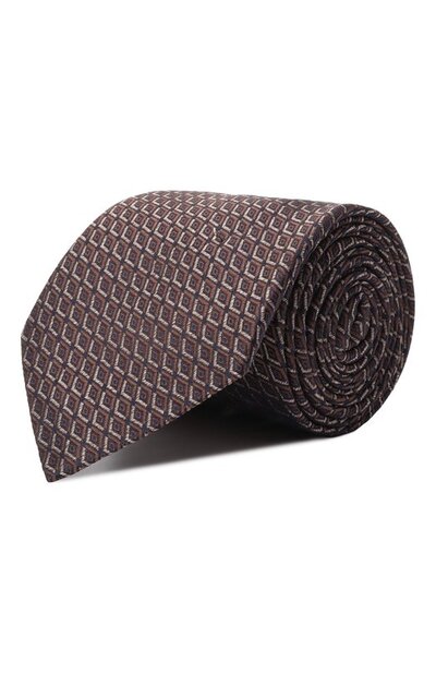 Галстук сшит из цельного отреза шелка с жаккардовым геометрическим узором. Аксессуар хорошо держит форму, а его длины хватит, чтобы завязать узел любой сложности.