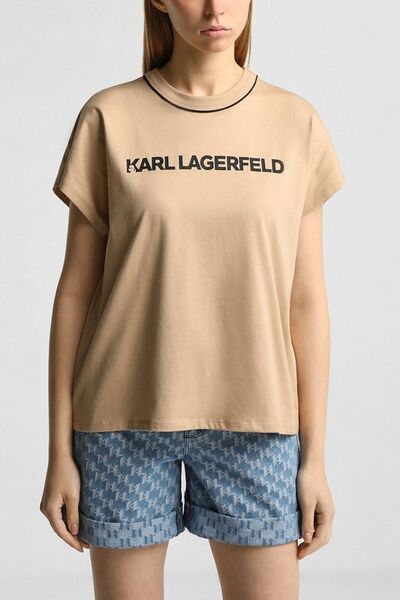 Футболка хлопковая с логотипом Karl Lagerfeld 7118778 (бежевый, lpn30073787)
