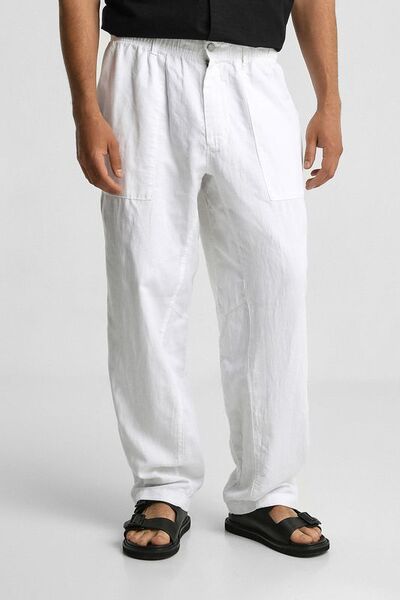 Брюки из хлопка и льна на эластичном поясе Calvin Klein Jeans 7695505 (белый, lpn30073794)