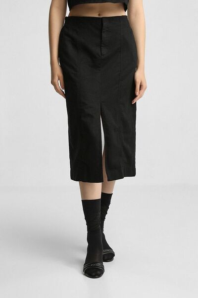 Юбка из хлопка и льна с разрезом Calvin Klein Jeans 7299104 (чёрный, lpn30073798)