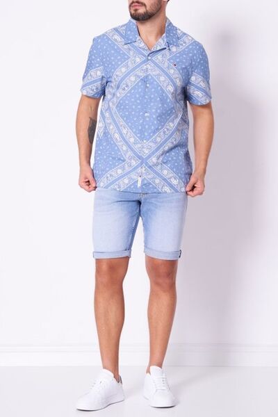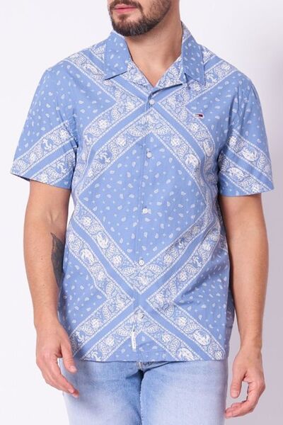 Рубашка хлопковая с коротким рукавом Tommy Jeans 7697896 (голубой, lpn30073826)