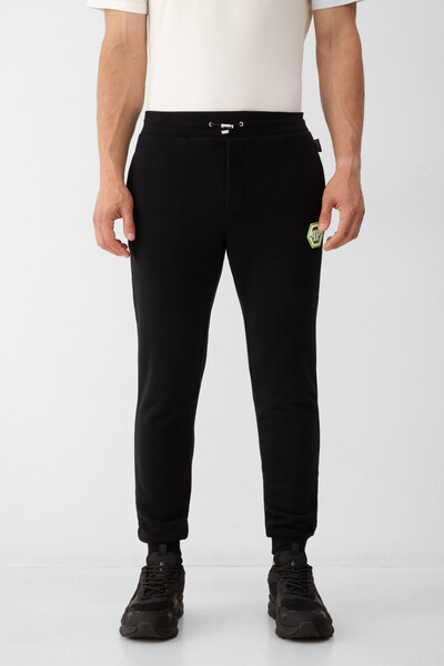 Прямые джоггеры на кулиске с утягивающим стоп-кордом от бренда Philipp Plein. Фасон изделия, для пошива которого выбран мягкий флис на основе хлопка и полиэстера, характеризуется наличием широкого эластичного пояса и манжет-резинок для оптимальной посадки по фигуре. О принадлежности модели Дому напоминают двухцветные крупная надпись «PLEIN» на правом заднем кармане и культовый рельефный шестигранник PP Hexagon, размещённый спереди. Для создания органичного спортивного комплекта сочетайте джоггеры с парной толстовкой из той же коллекции.