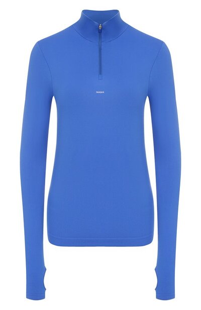 Пуловер с короткой молнией на воротнике-стойке украсили миниатюрным логотипом. Модель с манжетами-митенками выполнили из трикотажа на основе биоразлагаемого нейлона, обработанного составом Pprmint™.