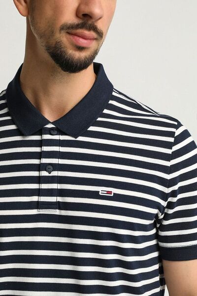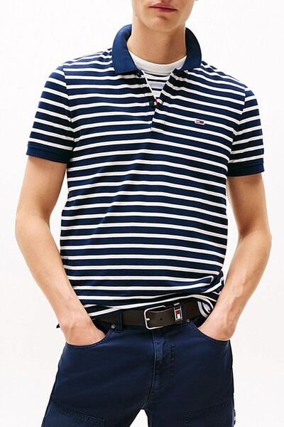 Поло хлопковое в полоску Tommy Jeans 7698124 (синий, lpn30086156)