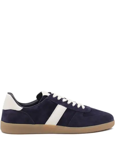 dark blue leather front lace-up fastening flat rubber sole tonal stitching