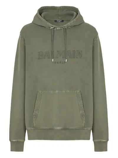 olive green drawstring hood front pouch pocket long sleeves straight hem