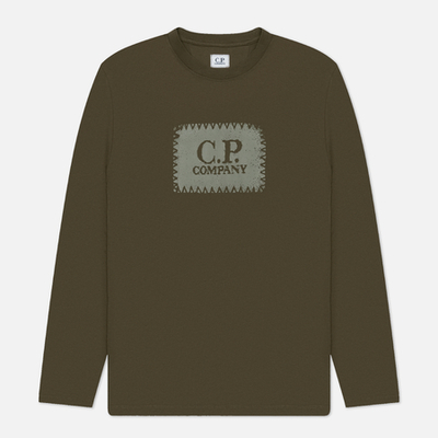 Мужской лонгслив C.P. Company 30/1 Jersey Logo Crew Neck, цвет оливковый, размер L 18cmts137a005100w 683-4943355 (lpn30100263)