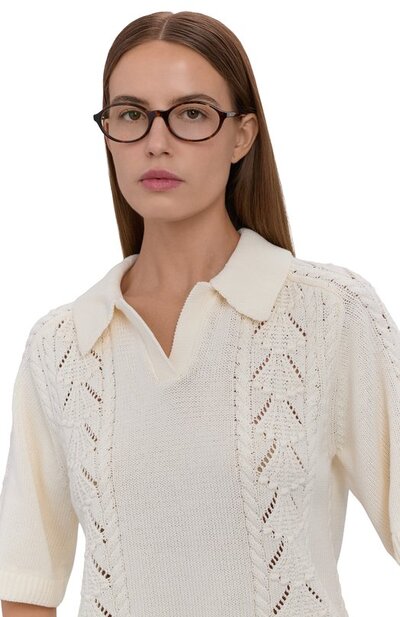 Оправа из ацетата Mazzucchelli черепаховой расцветки вошла в коллекцию LT. Ободы с просветляющими линзами Organic Base 2 соединили с брендированными дужками немецкими шарнирами OBE Technology ISS.