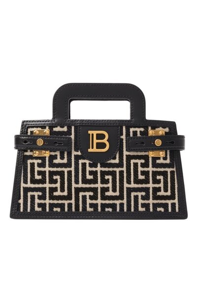 Сумка B-Buzz с двумя ручками и ремнем-цепочкой выполнена из хлопкового канваса с жаккардовым паттерном PB Labyrinthe и гладкой телячьей кожи. Аксессуар с внутренним карточным слотом и накладным карманом сзади украшен крупной литерой B.