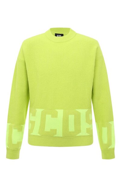 Для изготовления свитера салатового оттенка дизайнеры марки выбрали мягкую пряжу на основе легкого хлопка и прочного акрила. Изделие из такого материала удерживает тепло тела и хорошо пропускает воздух, поэтому подойдет для прохладной погоды. Модель выполнили фактурной вязкой, противопоставив ей гладкие вставки с крупным логотипом бренда.