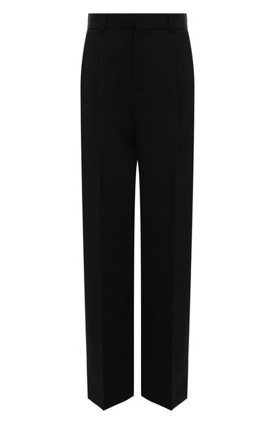 Предельно лаконичные черные брюки прямого кроя подружатся и со строгой рубашкой в наряде для офиса, и с жилетом или блузой в повседневном образе, и с декорированным жакетом в комплекте для вечернего выхода. Для пошива модели с высокой посадкой и отглаженными стрелками, визуально удлиняющими ноги, использовали тонкий твил из отборной шелковистой шерсти. Ткань с плотным диагональным переплетением нитей не подвержена пилингу и почти не мнется, поэтому изделие будет долго выглядеть безупречно.