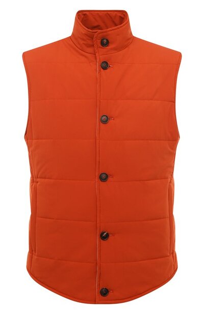Оранжевый жилет не только добавит цвета образу, но и справится со своей прямой задачей, обеспечив комфорт в переменчивую погоду. Модель с высоким воротником и двумя боковыми карманами сшили из плотного полиэстера, который не продувается и удерживает тепло. Стеганое изделие не создает излишний объем и садится точно по фигуре.