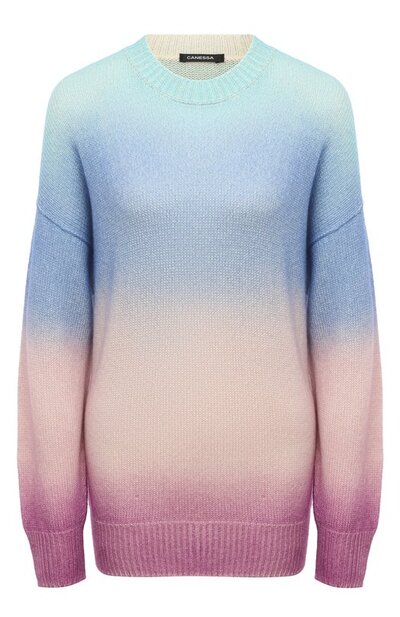 Свободный пуловер, окрашенный в технике деграде с плавным переходом цветов от голубого к розовому, поможет разнообразить палитру повседневного гардероба. Максимум комфорта в течение дня обеспечит мягкий нежный кашемир из пуха монгольских коз. Морозные ночи и жаркие дни способствуют появлению у горных животных густого подпушка, поддерживающего оптимальную температуру в любых погодных условиях.