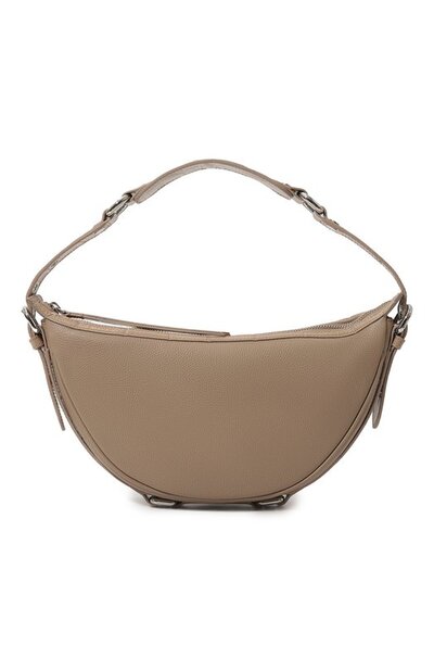 Небольшую бежевую сумку Gib с удлиненной регулируемой ручкой можно носить и в руке, и на плече. Однотонный аксессуар в форме полумесяца мастера марки сшили из матовой зернистой кожи, на которой будут незаметны мелкие царапины. Во внутреннее отделение, застегивающееся молнией сверху, поместятся кошелек, смартфон и ключи.
