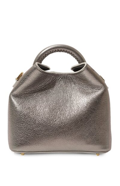 Небольшая серебристая сумка Madeleine с короткой круглой ручкой выполнена из мягкой металлизированной кожи с перламутровым блеском. Внутри — одно отделение, застегивающееся магнитной кнопкой, в которое поместятся кошелек, смартфон. Лаконичный аксессуар без декора дополнен съемным плечевым ремнем.