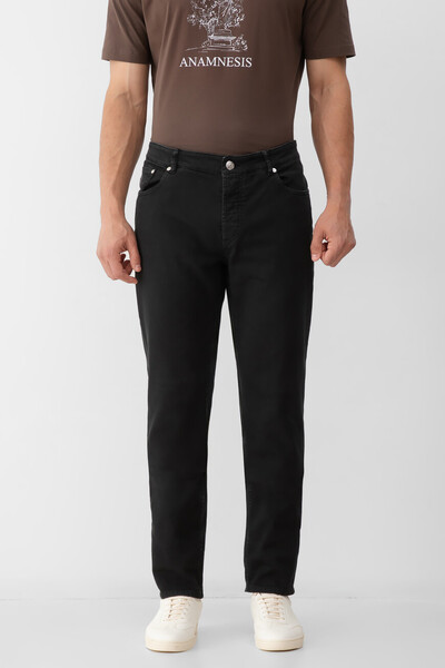 Джинсы силуэта Traditional Fit от BRUNELLO CUCINELLI с дизайнерскими потёртостями. Для пошива изделия на брендированных металлических пуговицах, покрытых планкой, выбран эластичный хлопковый деним. Окрашенную в готовом виде модель чёрного цвета украшают вышитая эмблема Solomeo на маленьком кармане спереди и прямоугольный патч с культовой символикой Дома на плотном поясе сзади.