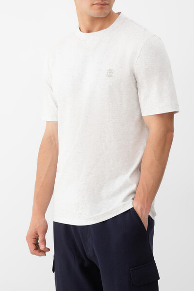 Прямая футболка BRUNELLO CUCINELLI станет основой Ваших повседневных комплектов. Модель изготовлена из лёгкого хлопкового джерси и оснащена миниатюрными боковыми разрезами для удобства в носке. О принадлежности изделия с деталью в виде перевёрнутого треугольника спереди Дому деликатно напоминает серый вышитый логотип Solomeo.