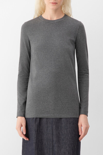 Прилегающий лонгслив BRUNELLO CUCINELLI с минималистичной знаковой символикой. Модель изготовлена из эластичного хлопкового трикотажа серого оттенка. Лёгкий материал хорошо пропускает воздух и немного тянется, делая посадку вещи максимально комфортной. Изделие декорировано вышивкой из узкого ряда цепочки Мониль на спинке вдоль круглого выреза горловины.