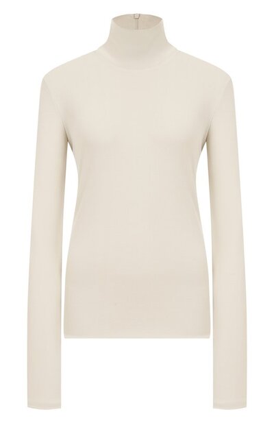 Водолазку из вискозы с добавлением нейлона дополнили короткой потайной молнией сзади. Модель с высоким воротом органично впишется в базовый гардероб.
