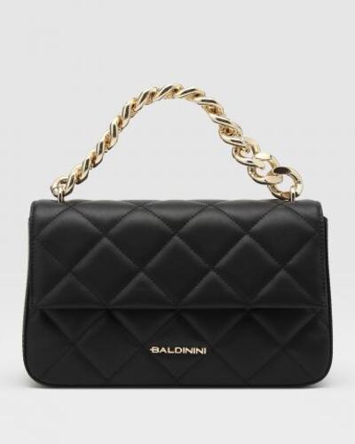 Сумка Baldinini из натуральной кожи с декоративной строчкой в ромб. Ручка — акцентная массивная цепочка в золотистом цвете. Дополнительный плечевой ремень крепится на карабины. Модель закрывается на магнитный замок. Внутри — текстильная подкладка и карман на молнии. Переднюю поверхность аксессуара украшает логотип бренда.