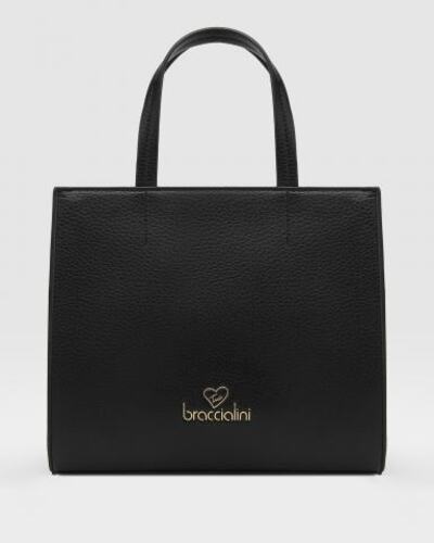 Сумка Braccialini из кожи в черном цвете. Классическая сумка с двумя ручками выполнена из искусственной кожи. Съемный регулируемый плечевой ремень из кожи в тон позволит носить её на плече. Сумка застегивается на магнитный замок, внутри — текстильная подкладка и карман на молнии.