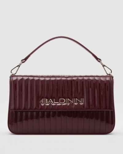 Компактная сумка Baldinini выполнена из натуральной лакированной кожи в вертикальную строчку. Модель дополнена кожаной ручкой и широким плечевым ремнем. Закрывается на магнитный замок. Внутри — текстильная подкладка и карман на молнии. Аксессуар украшен логотипом бренда из золотистого металла.