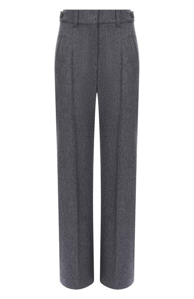Прямые брюки с регулируемыми патами на поясе и четырьмя карманами станут комфортной основой casual-образов. Для пошива модели с застежкой на потайные молнию, пуговицу и крючки использовали меланжевую фланель из шерсти первого пострига.