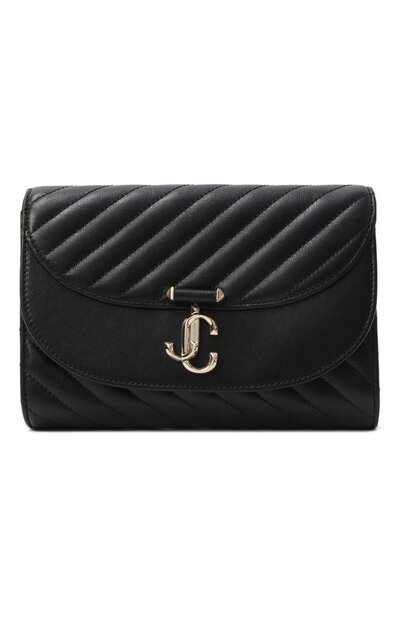 Клатч Curve со съемным ремнем-цепочкой выполнили из мелкозернистой кожи со стеганым диагональным узором. Модель с накладными карманами внутри и на задней панели закрывается на магнитную кнопку клапаном с золотистой монограммой JC.