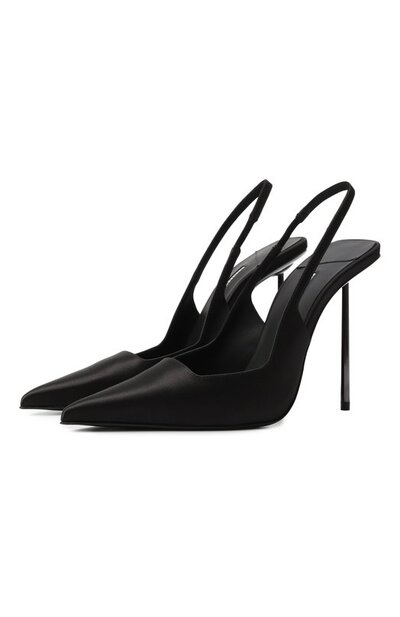 Туфли Amelia с заостренным мысом и квадратным вырезом сшиты из гладкого атласа. Модель с высокой стальной шпилькой и кожаным подкладом дополнена узким ремешком с эластичной вставкой.