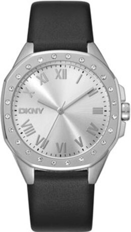 Женские кварцевые часы. Серебристый sunray циферблат с логотипом DKNY на позиции «9 часов», центральные часовая, минутная и секундная стрелки, римские и штриховые часовые метки. Круглый корпус из нержавеющей стали, безель инкрустирован кристаллами. Кожаный ремешок. Прочное минеральное стекло, защищающее от царапин и повреждений. Водонепроницаемость WR 50 (кратковременное прогружение в воду). Минималистичный и роскошный стиль часов, способных украшать женское запястье каждый день. Модный аксессуар, передающий деловой дух Нью-Йорка, радующий глаз и подчеркивающий женственную утонченность.