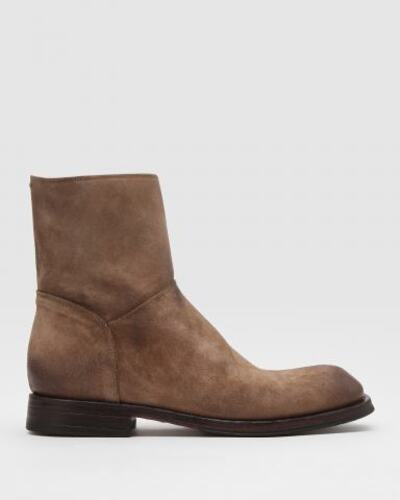 Ботинки Pantanetti с приподнятым носом, обработанным вручную для придания паре винтажного эффекта, выполнены из мягкой замши. Материал внутренней подкладки, стельки и контрастной подошвы — натуральная кожа, обеспечивающая воздухопроницаемость и абсолютный комфорт на протяжении всего дня. Для удобства модель дополнена застежкой на молнию по внутренней поверхности.