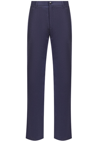Мужские брюки Zilli, окрашенные в темный синий цвет, сочетают классический стиль с непревзойденным качеством исполнения. Тонкое переплетение ткани из мягкой шерсти создает слегка заметный, но элегантный узор, добавляя ткани глубины и изысканной текстуры. Простой, но выразительный силуэт брюк обрамляется аккуратными строчками, а детали, такие как утонченные шлёвки для ремня и мягкие складки, делают акцент на ручной отделке, характерной для изысканных изделий Zilli.
