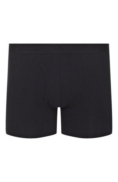 Боксеры Alex выполнили из стрейчевого джерси на основе терморегулирующего микромодала. Трусы с гульфиком без застежки дополнили широким поясом-резинкой с жаккардовым логотипом в тон.