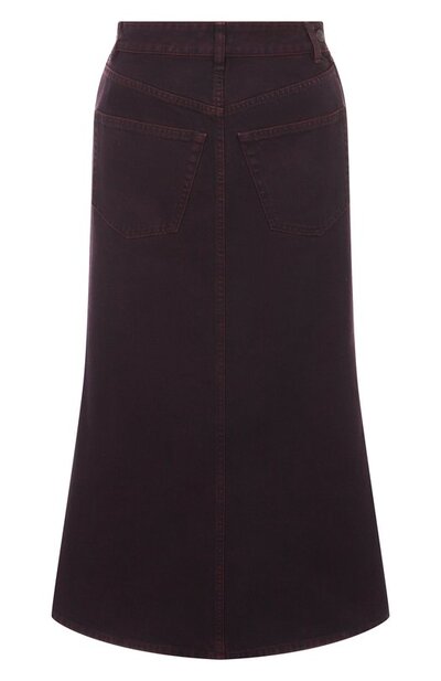 Расклешенная джинсовая миди-юбка с высокой посадкой сшита из хлопкового денима. Модель с четырьмя накладными карманами украшена фирменным патчем сзади.