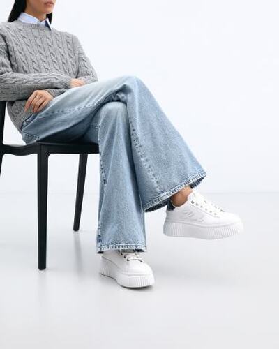 Кроссовки Karl Lagerfeld на шнуровке выполнены из натуральной гладкой кожи. Высокая рельефная подошва создает динамичный силуэт. Контрастный задник и внешняя поверхность украшены культовым логотипом бренда. Подошва изготовлена из прочного полимера.