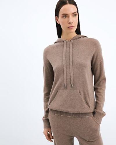Джемпер Principe di Bologna из итальянской пряжи, в основе которой шерсть и кашемир, отличается особой мягкостью. Модель выполнена в комбинированной архитектуре: в лаконичном, полуприлегающем крое с капюшоном в спортивной эстетике. Изделие формоустойчиво благодаря эластичным манжетам. Для удобства джемпер дополнен вместительным карманом спереди.