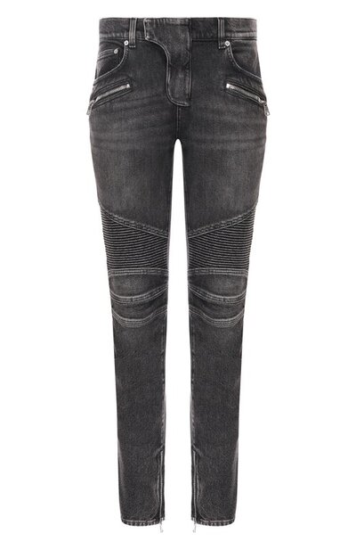 Джинсы biker с брендированным патчем на поясе сзади и стегаными вставками в области колен выполнили из хлопкового денима стрейч. Модель с потертостями дополнили боковыми молниями снизу, которым вторит застежка у двух из семи карманов.