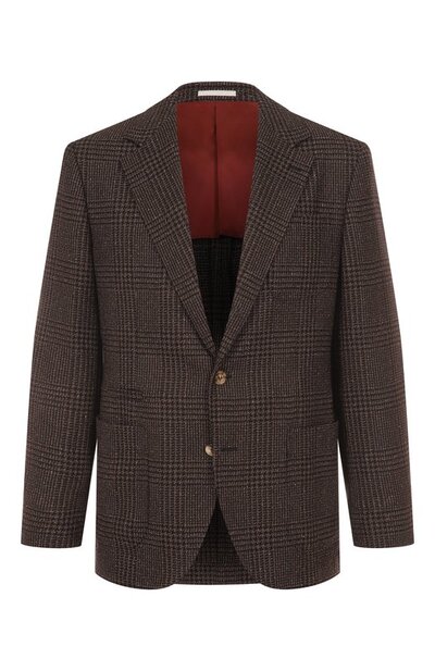 Однобортный пиджак в клетку гленчек станет основой образа в стиле smart casual. Модель с двумя шлицами сзади сшили из микса шерсти, руна альпака и шелка, а для полуподклада выбрали купро. Помимо нагрудного и боковых карманов предусмотрели еще пару внутренних и держатель для ручки.