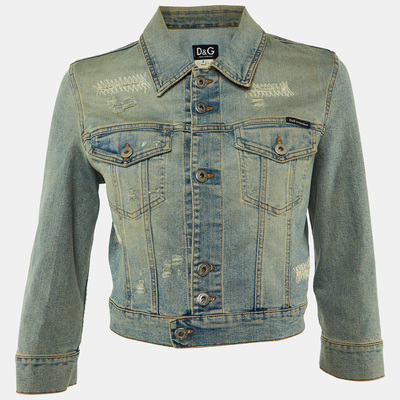 Dolce and Gabbana gives casual cool a twist with this light blue denim jacket. Featuring classic button front styling and a tailored fit, it’s a wardrobe staple that balances rugged charm with refined edge.