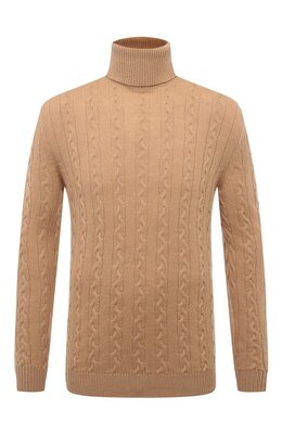 Свитер с арановой вязкой отлично впишется в образ total black с брюками и хайкерами. Модель с высоким воротником , как у водолазки, выполнили из шерсти с добавлением нежного кашемира и прочного полиамида.